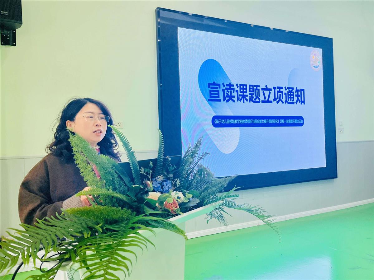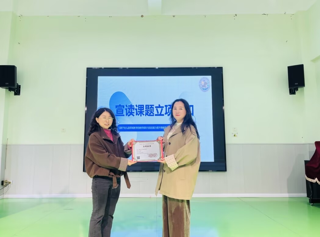 会议开始,冯文霞老师正式宣读《基于幼儿园领域教学的教师倾听与回应能力提升策略研究》课题立项通知书,这份立项喜讯,坚定了课题组成员深耕课题、破解实践难题的信心与决心。