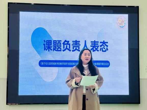 针对专家们高屋建瓴的指导与精准点拨,课题负责人、蒙学兰园长代表课题组作表态发言。她首先对三位专家的倾囊相授与宝贵建议表示衷心感谢,并郑重承诺:课题组将第一时间组织全体成员,全面梳理、逐条消化专家意见,对开题报告进行深度优化与精准聚焦;在后续研究中,将始终立足教育教学现场,扎实推进行动研究,严格把控研究质量,确保课题研究落到实处、取得实效,最终实现赋能教师专业成长、滋养幼儿全面发展的核心目标。